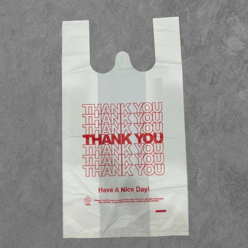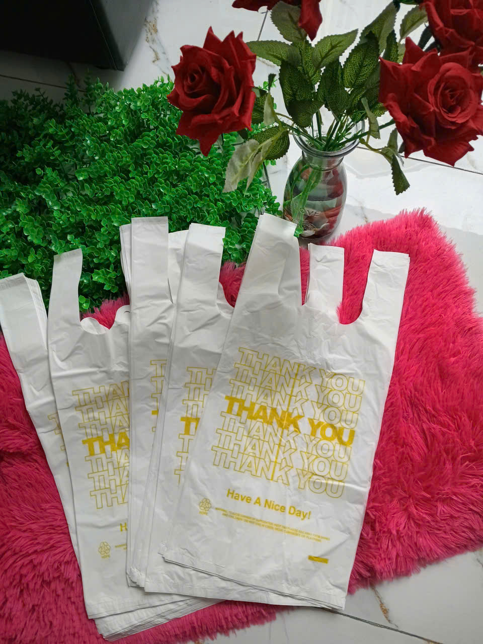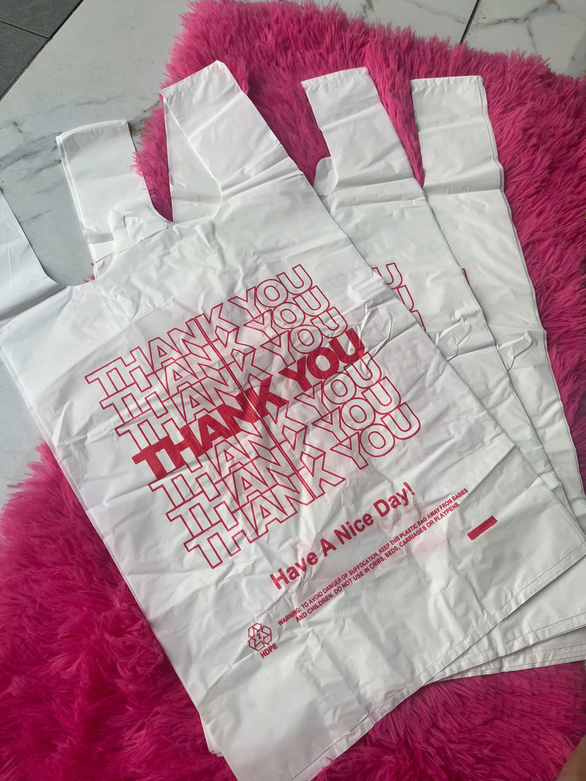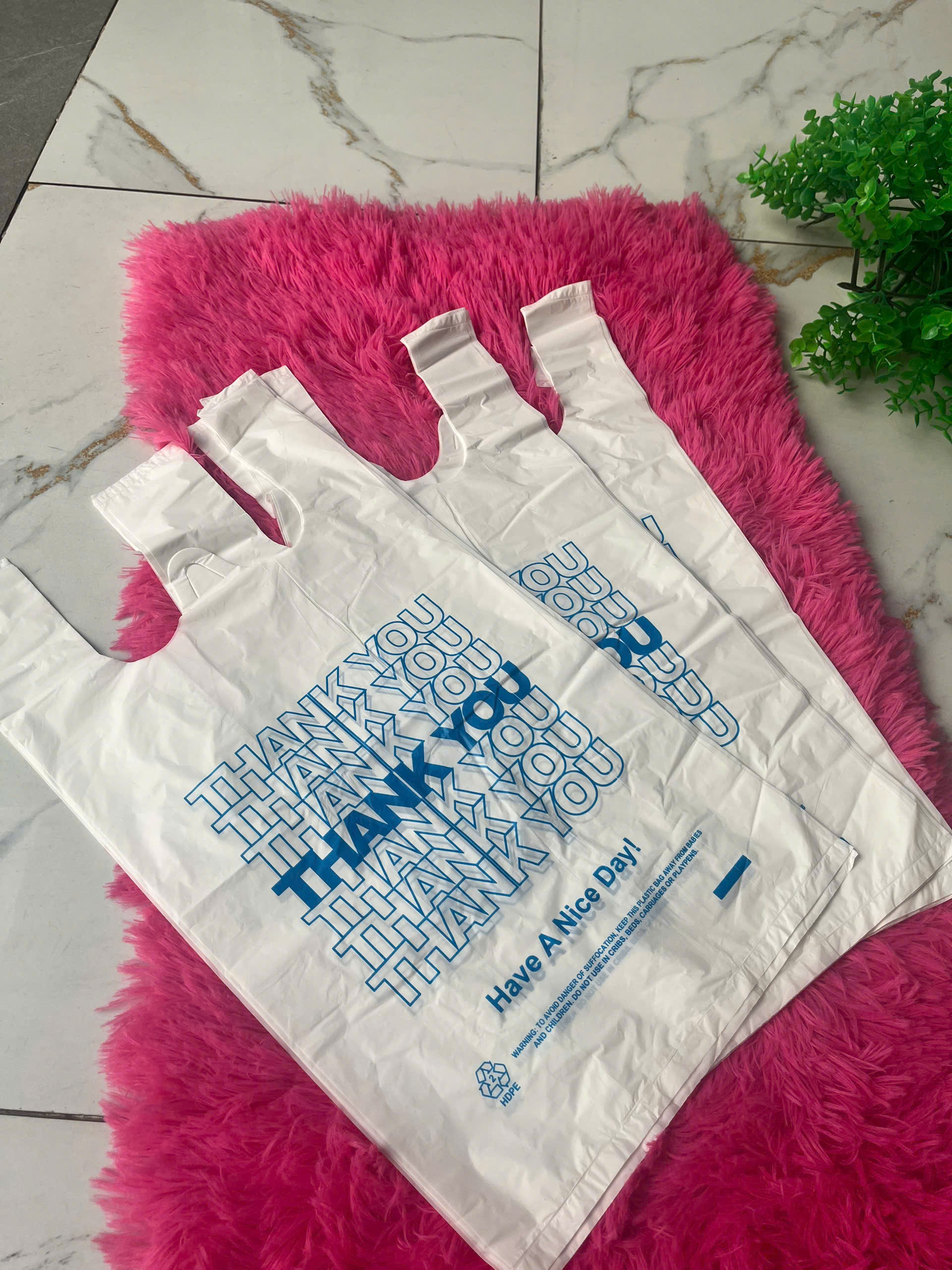 Túi hai quai màu trắng in chữ “Thank You” sang trọng, lịch sự — phù hợp cho cửa hàng, quán ăn, siêu thị hoặc gói quà nhỏ.