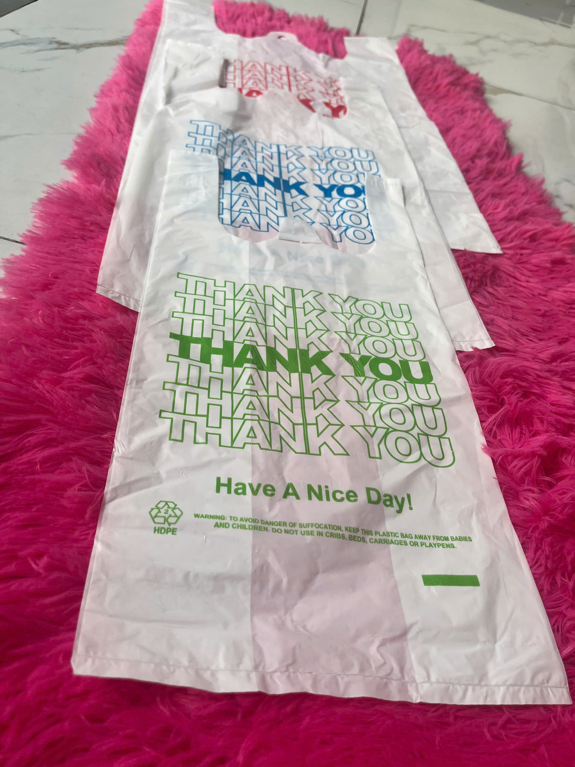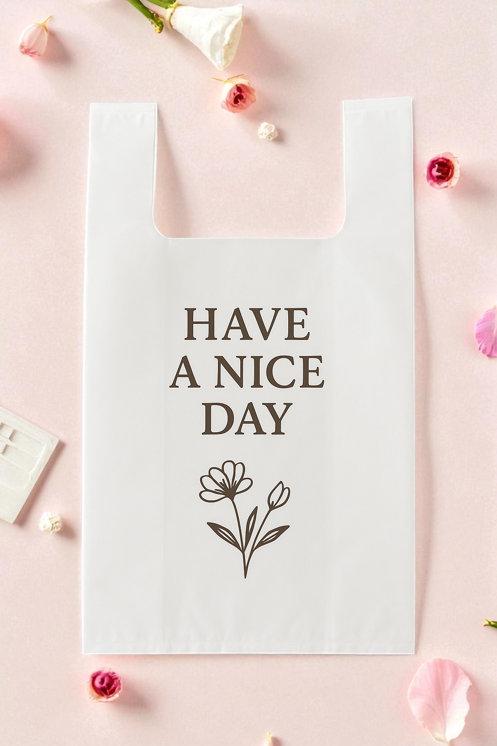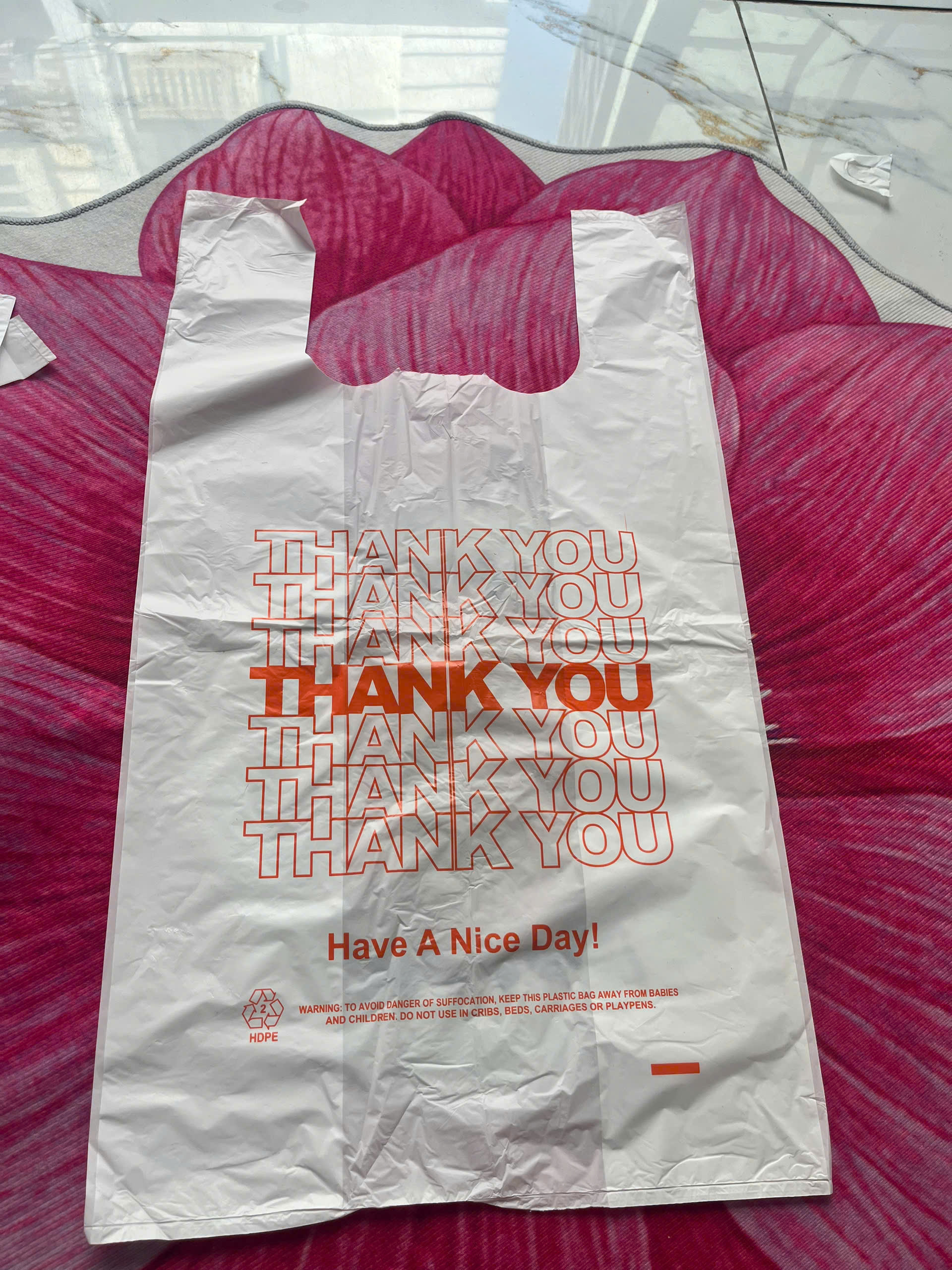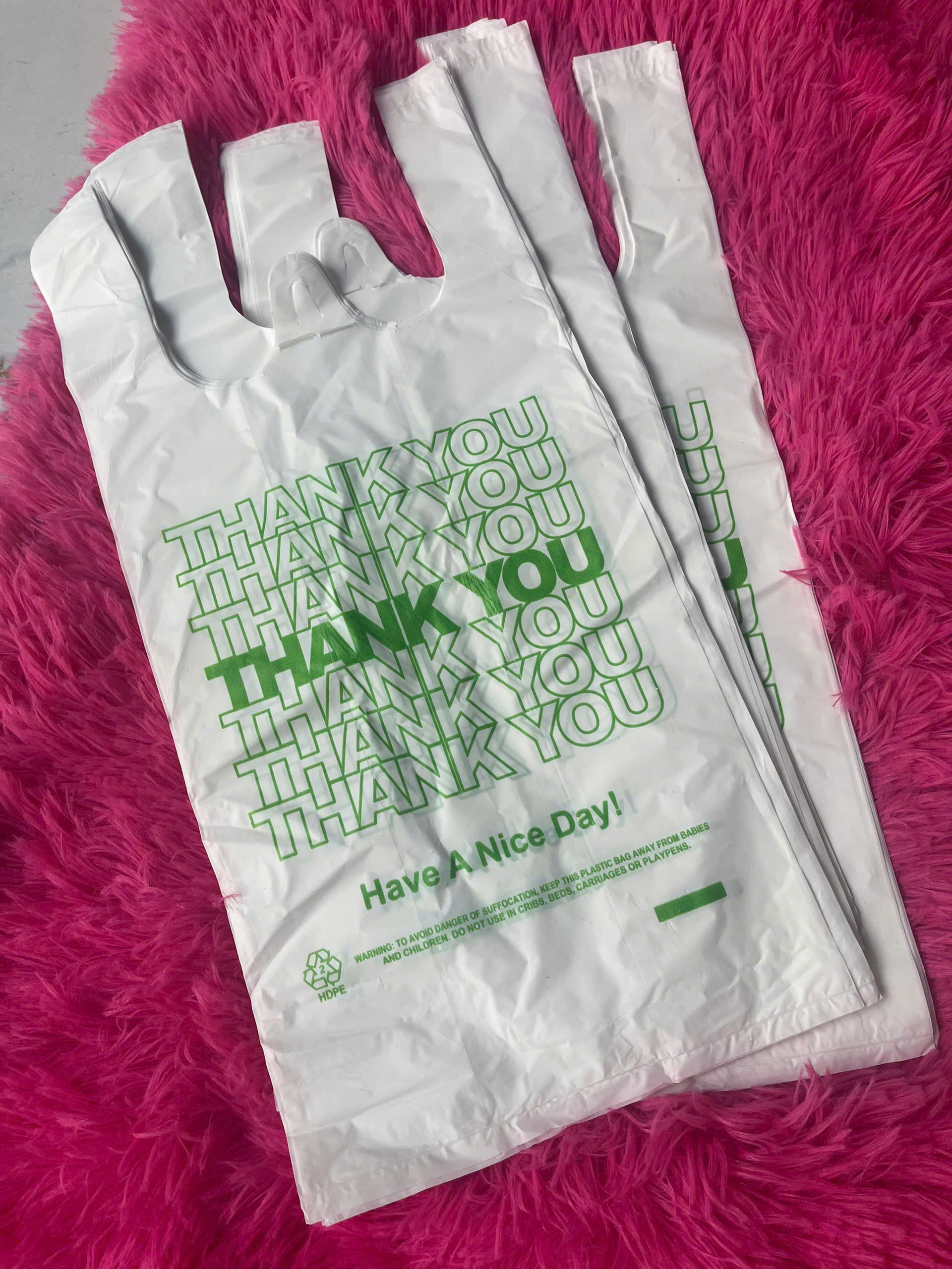 Túi hai quai màu trắng in chữ “Thank You” sang trọng, lịch sự — phù hợp cho cửa hàng, quán ăn, siêu thị hoặc gói quà nhỏ.